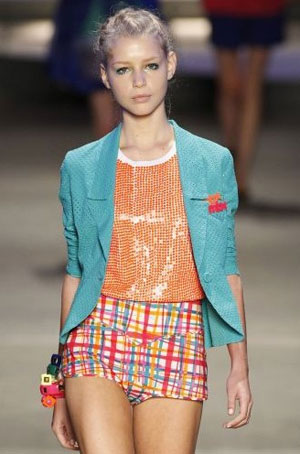 O short colorido é muuito fashion, mas, talvez, um pouco curto demais.