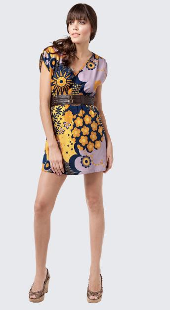 A roupa dessa semana é um vestido curto e estampado.